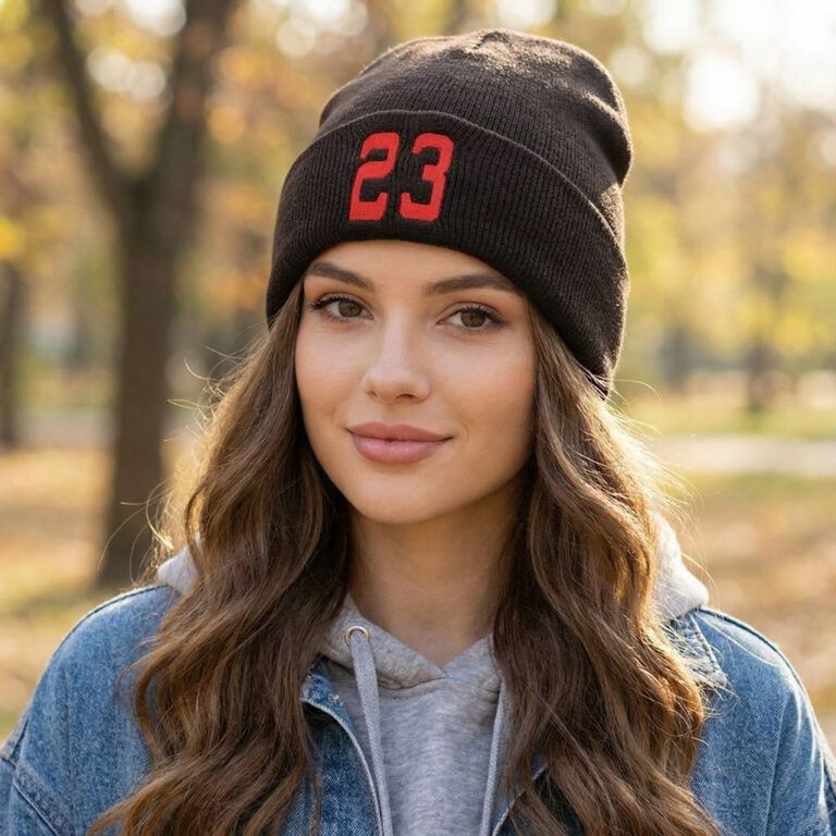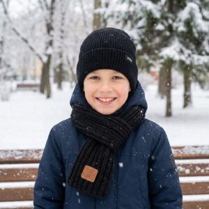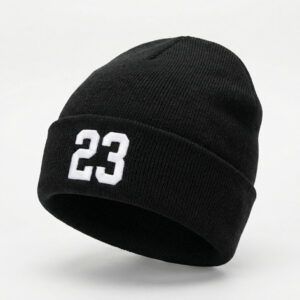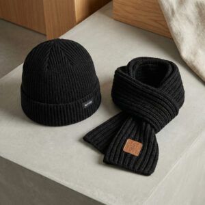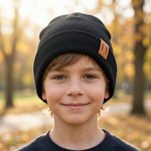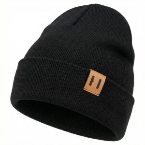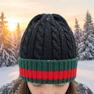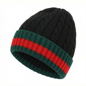Black Cozy Unisex Fashion Winter Beanie Tam With Chic Green and Red Strip Chuff