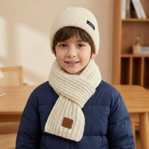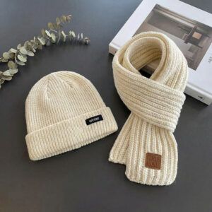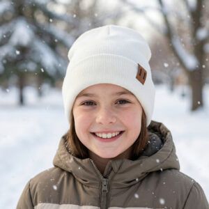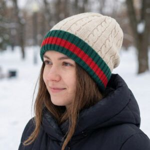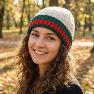 White Cozy Unisex Fashion Winter Beanie Tam With Chic Green and Red Strip Chuff