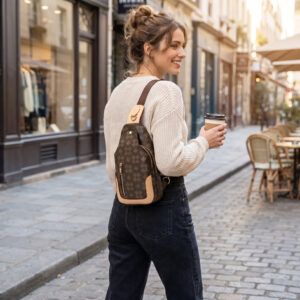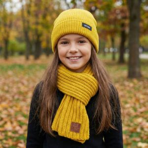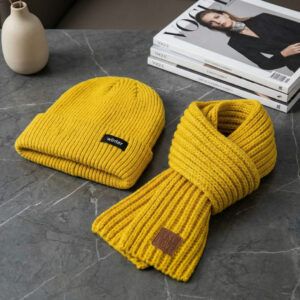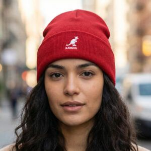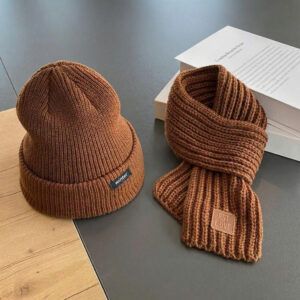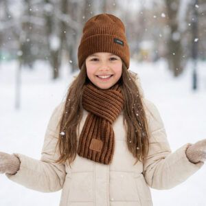 Light Brown Cozy Unisex Winter Fashion Beanie Tam With Chic Green and Red Strip Chuff