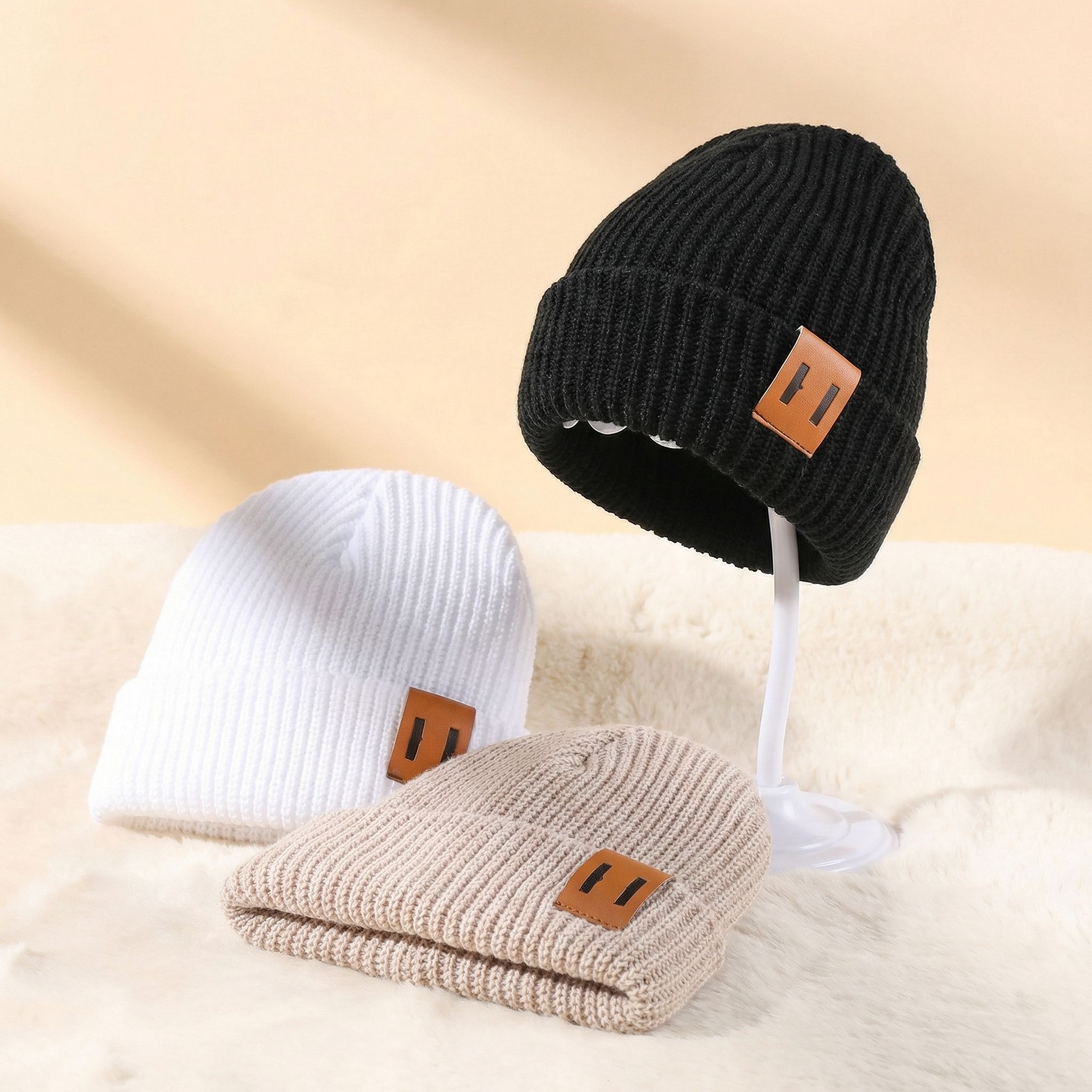 • 3-Pack Variety – Includes black, white, and beige baby beanies