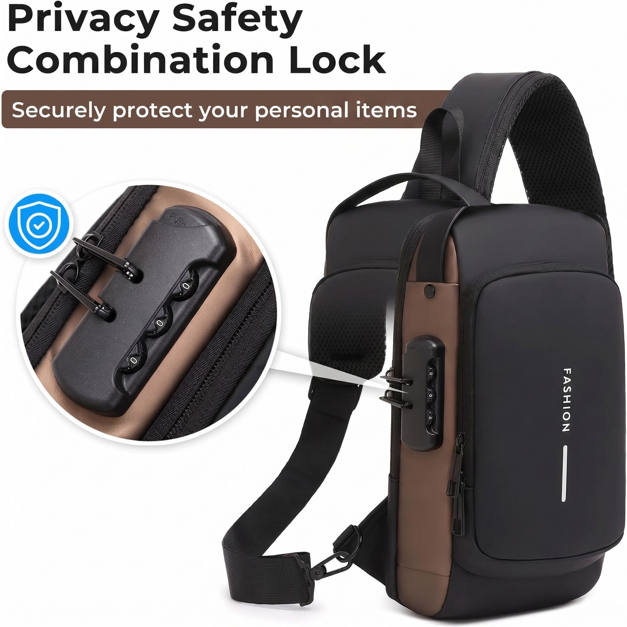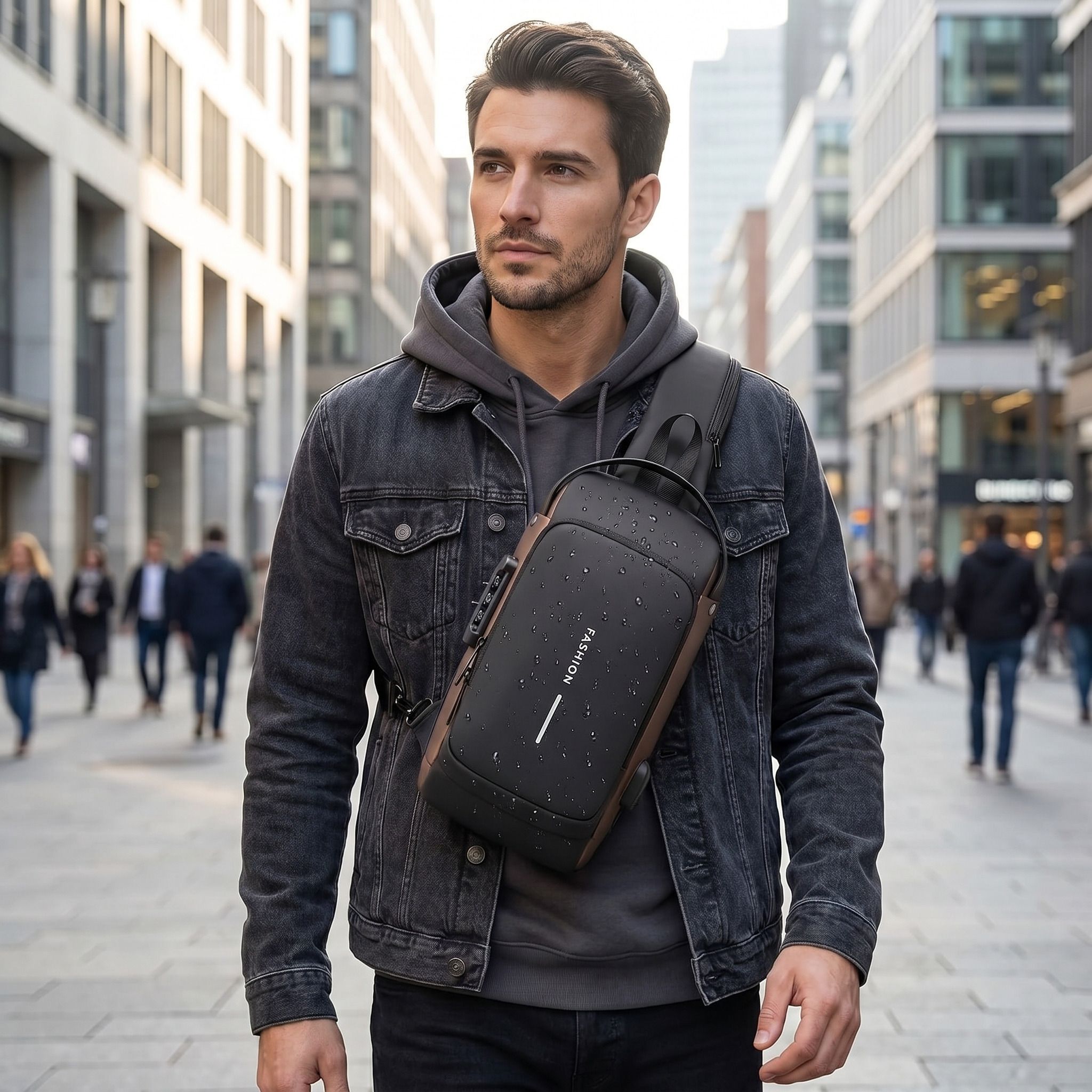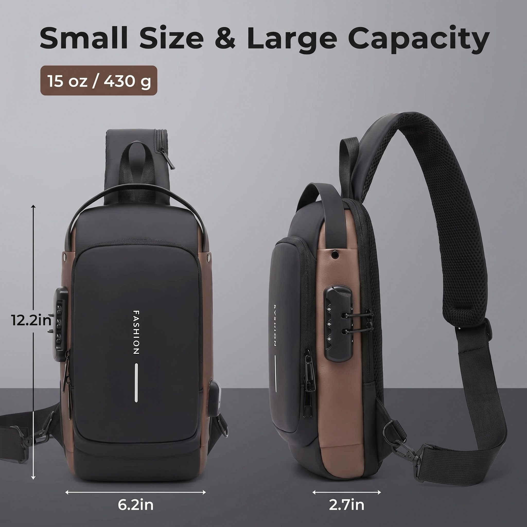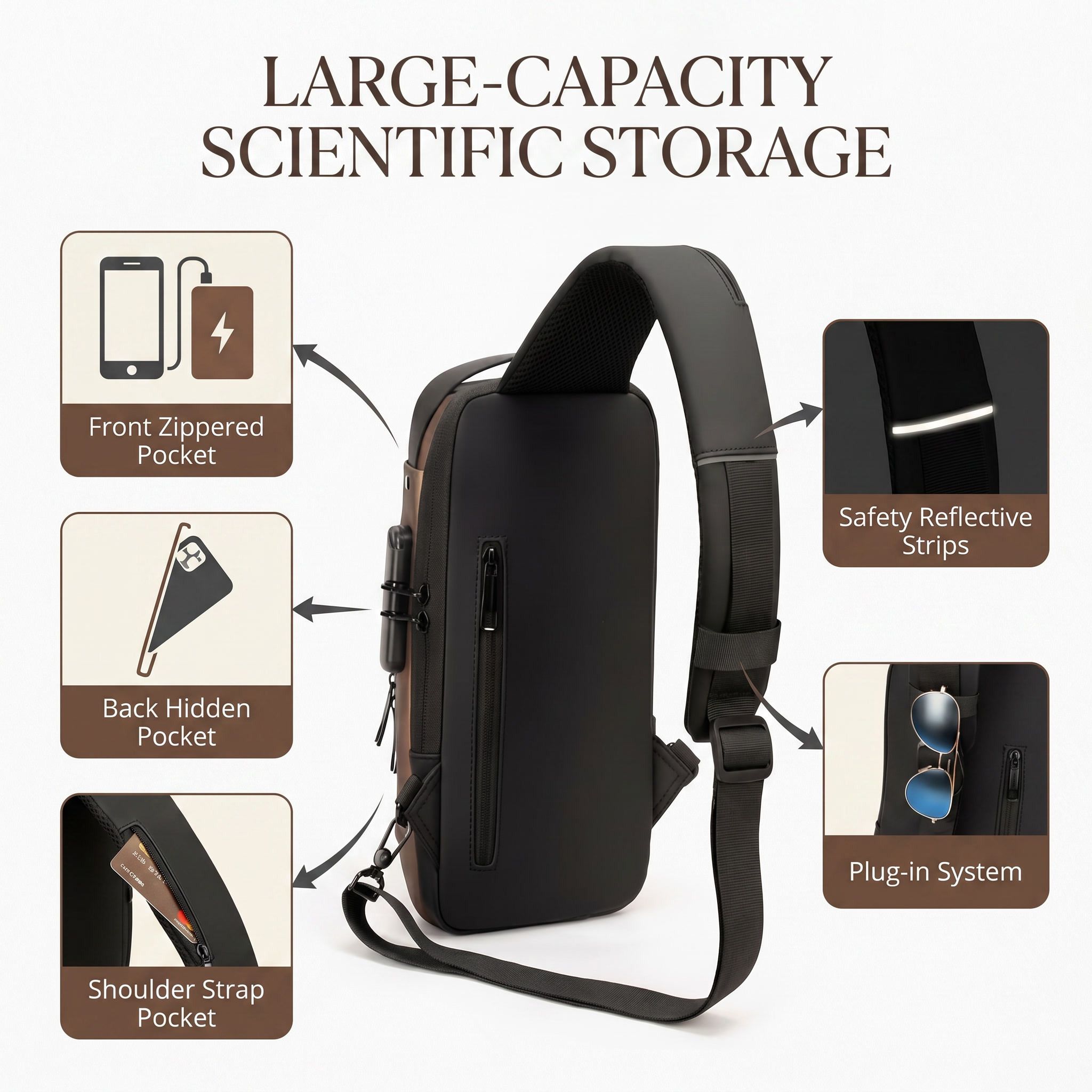 Designed with hidden compartments and secure zipper closures, this sling bag helps protect your valuables while you’re on the move. Its lightweight, water-resistant construction makes it perfect for travel, commuting, or everyday use.