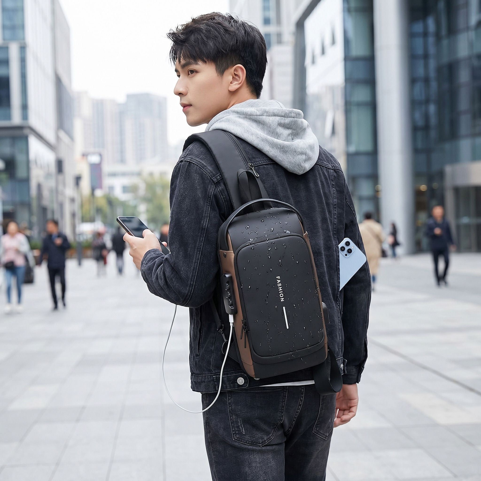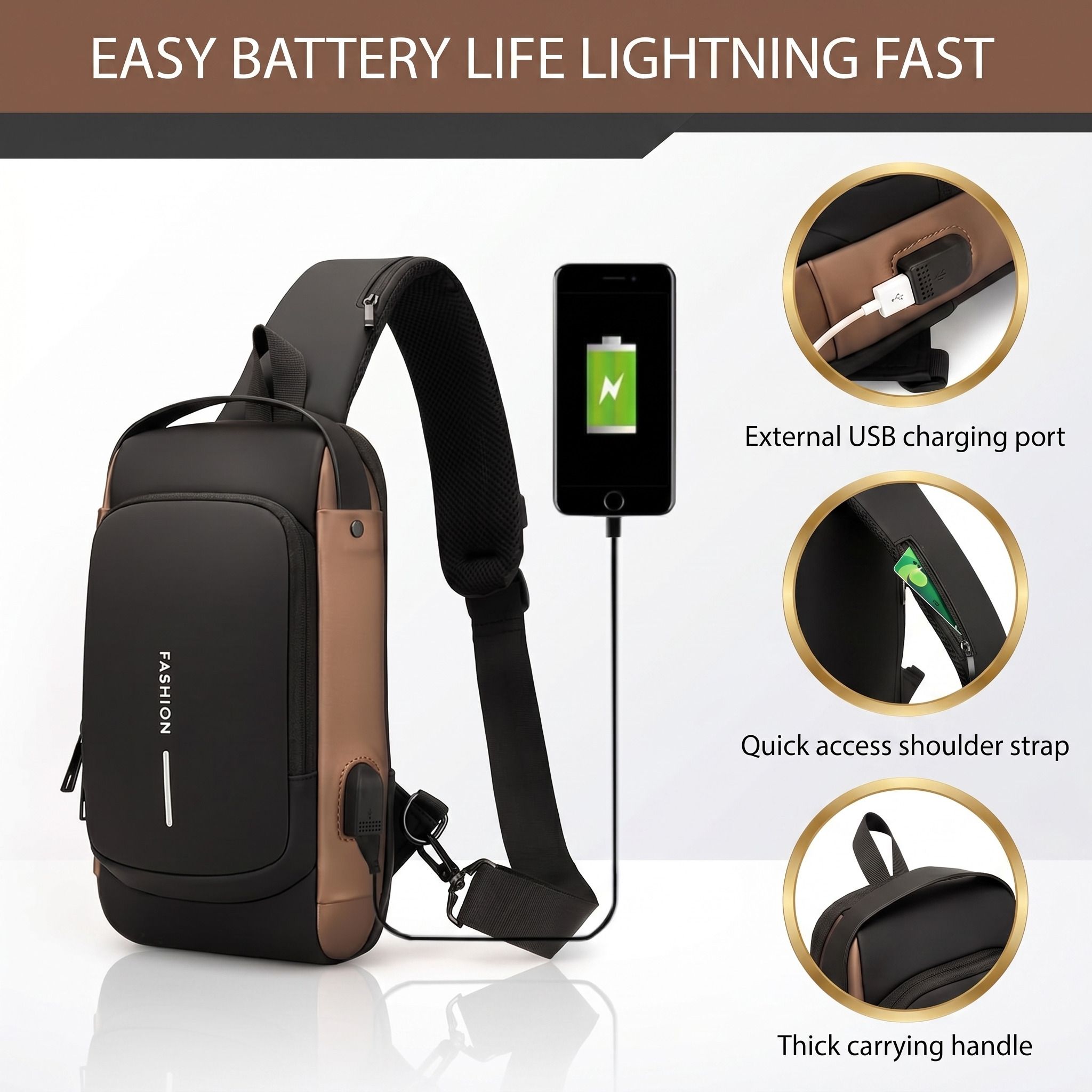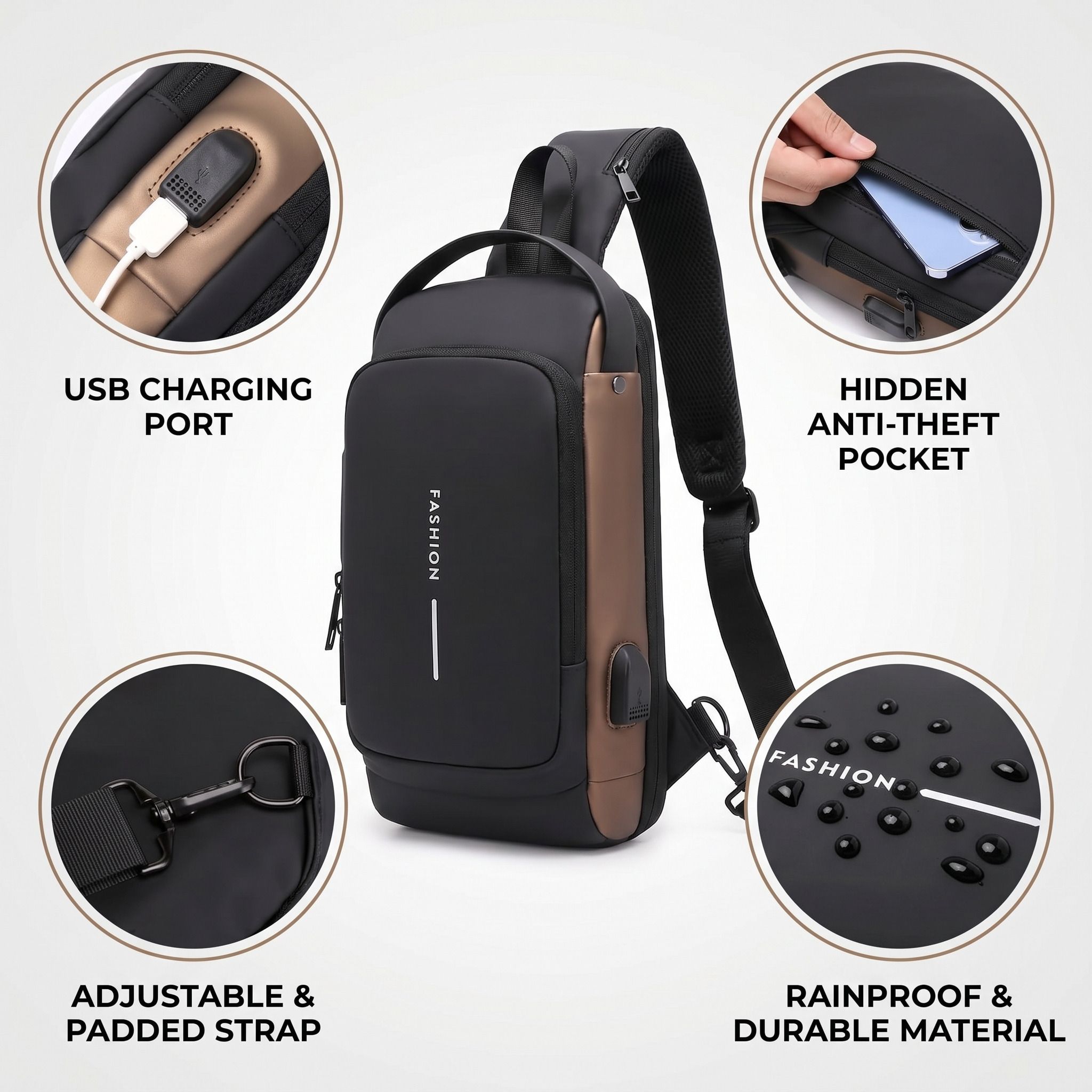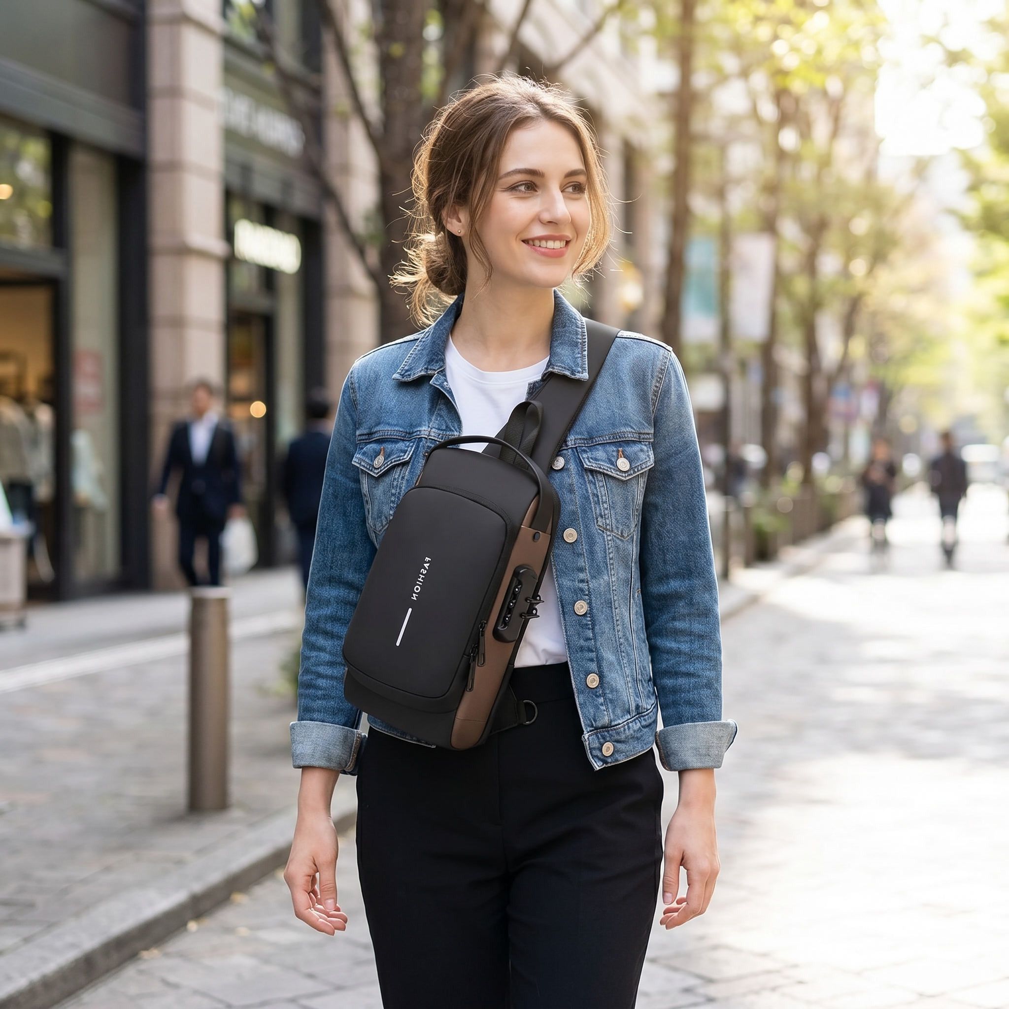 Designed with hidden compartments and secure zipper closures, this sling bag helps protect your valuables while you’re on the move. Its lightweight, water-resistant construction makes it perfect for travel, commuting, or everyday use.