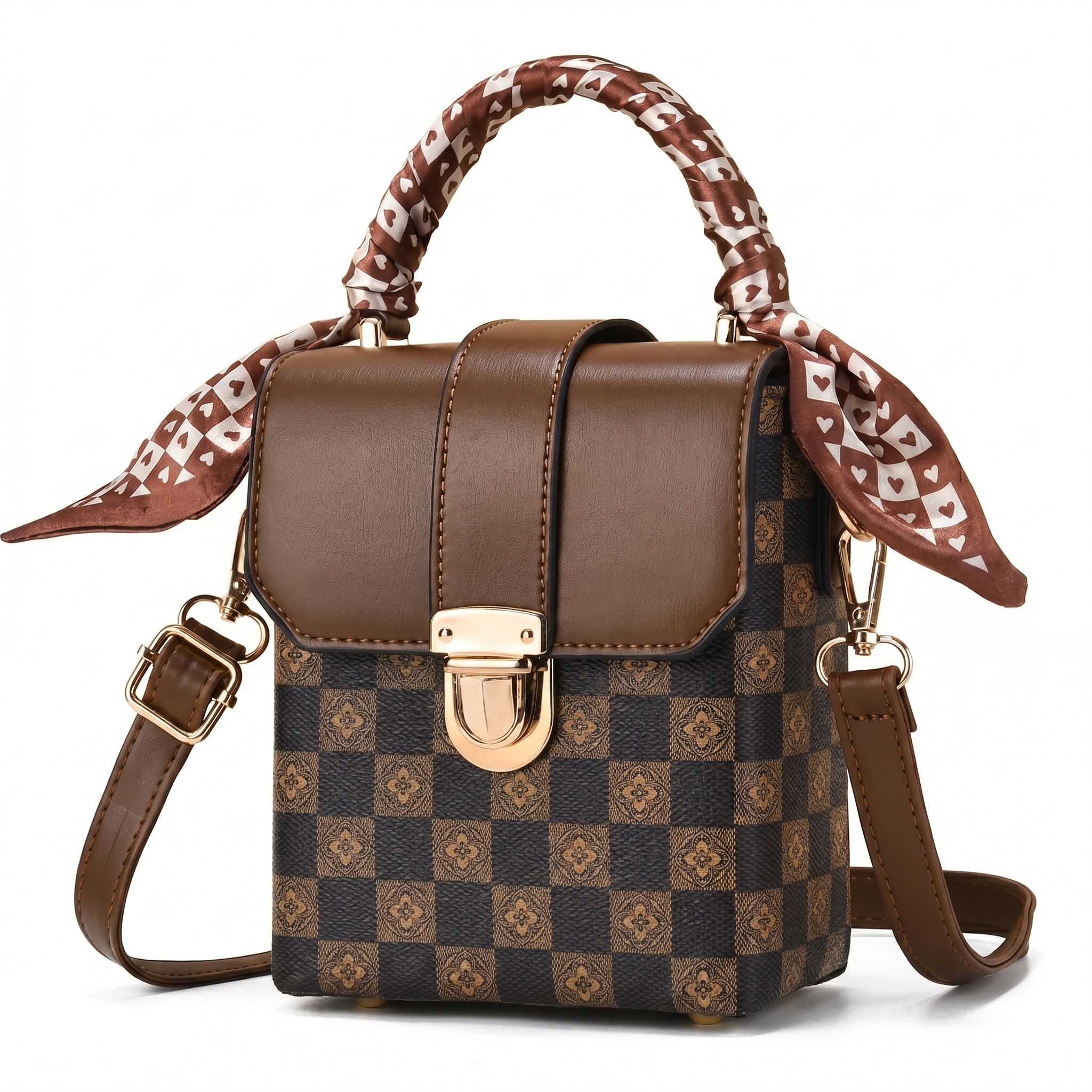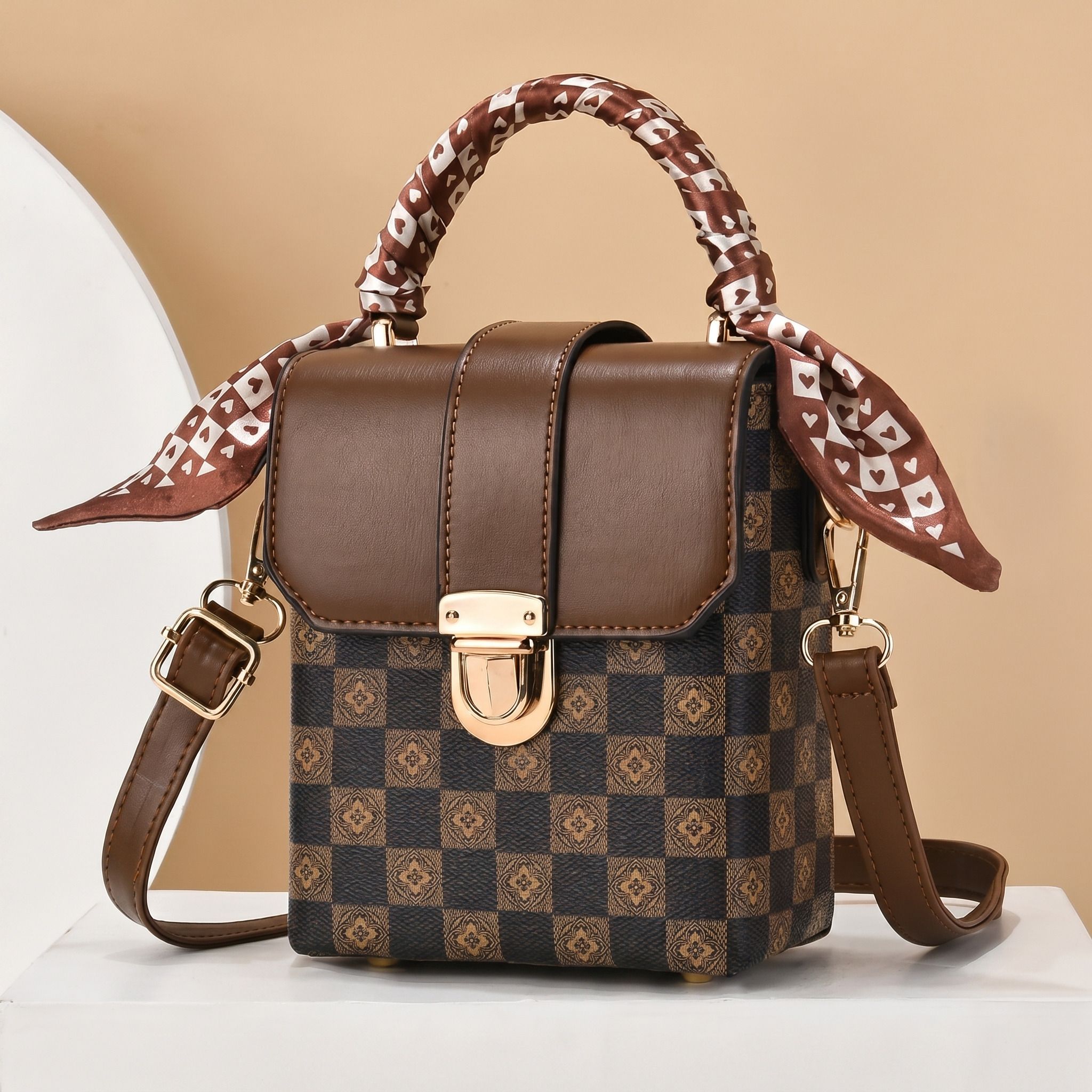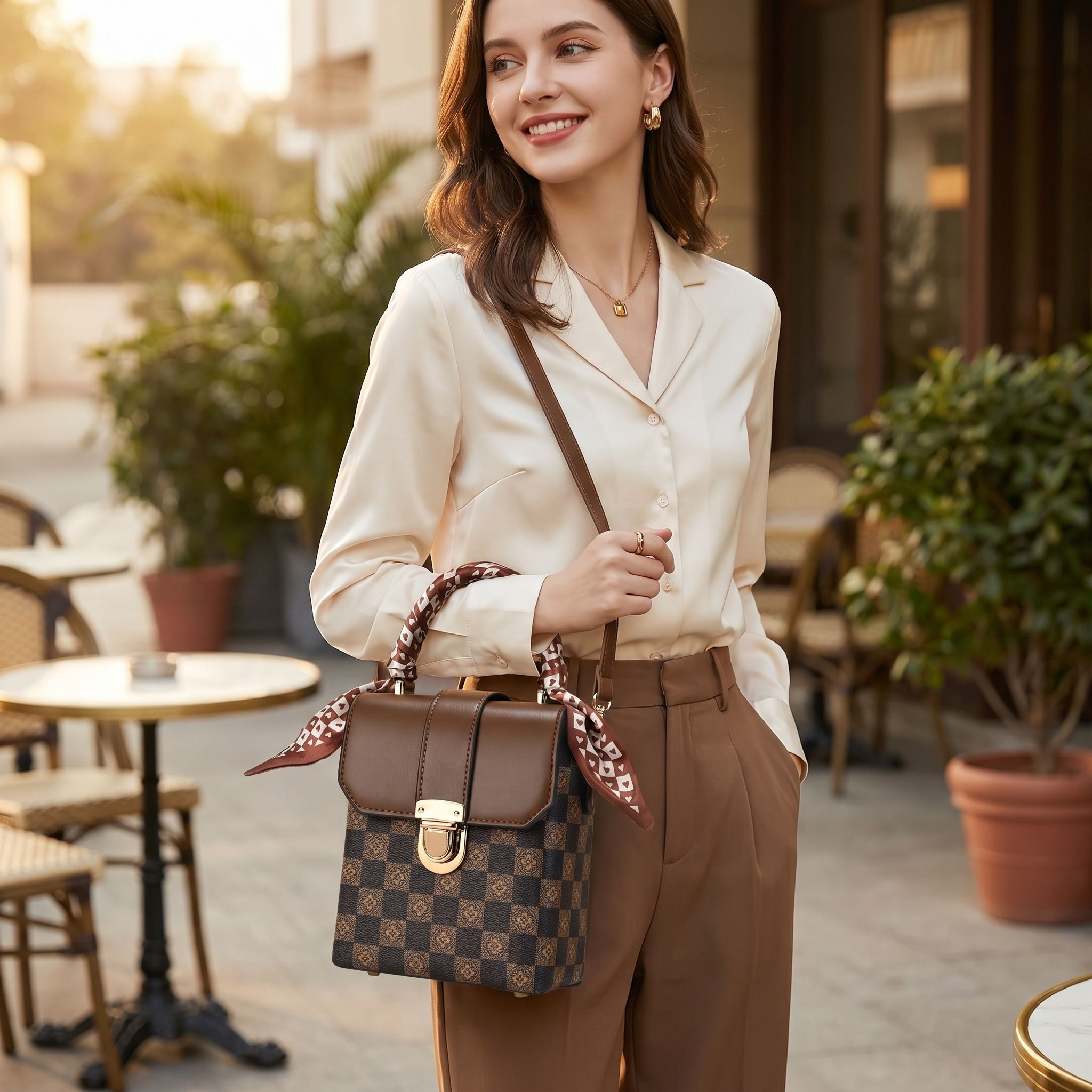 The Brown Top Checkered Satchel Bag blends classic design with modern functionality.