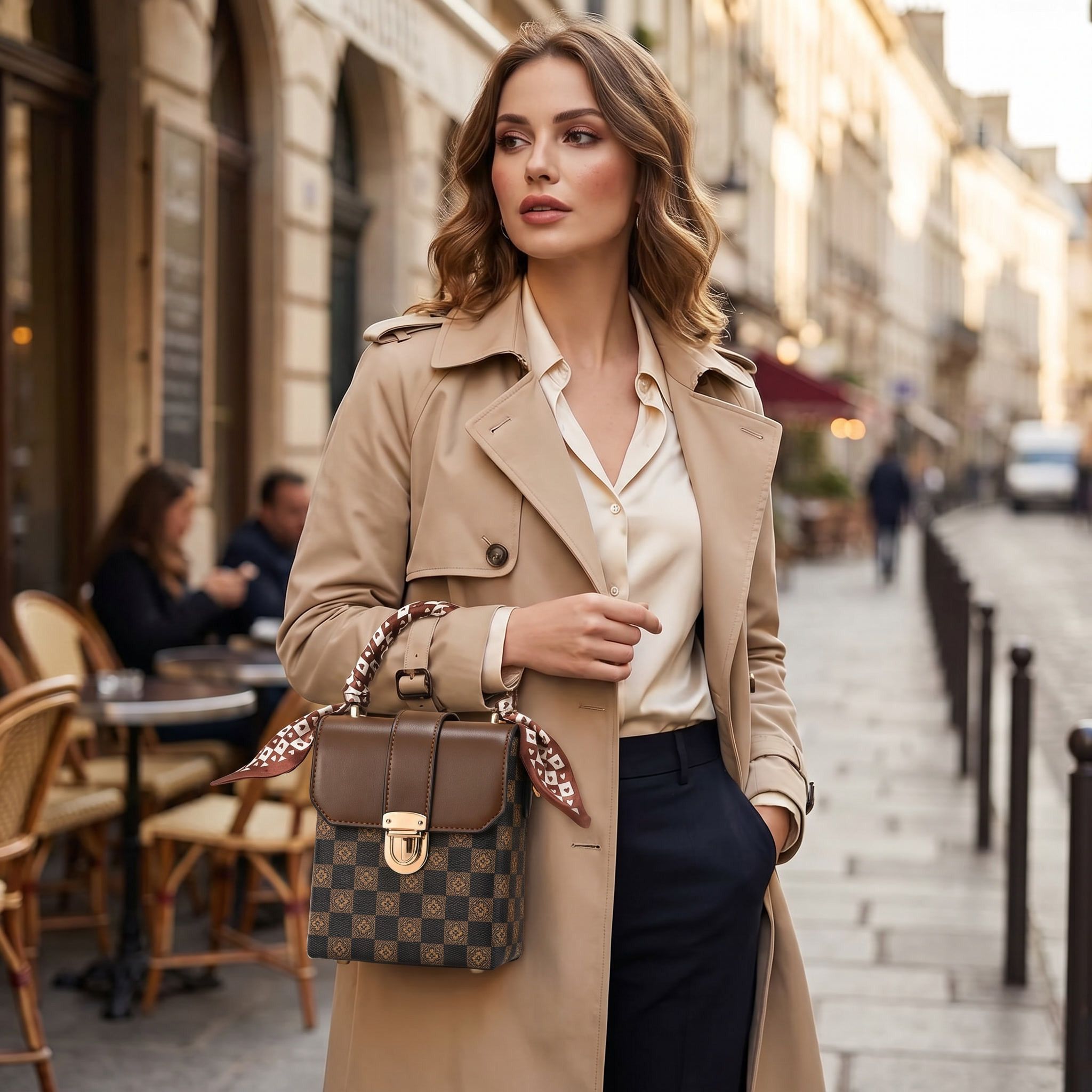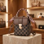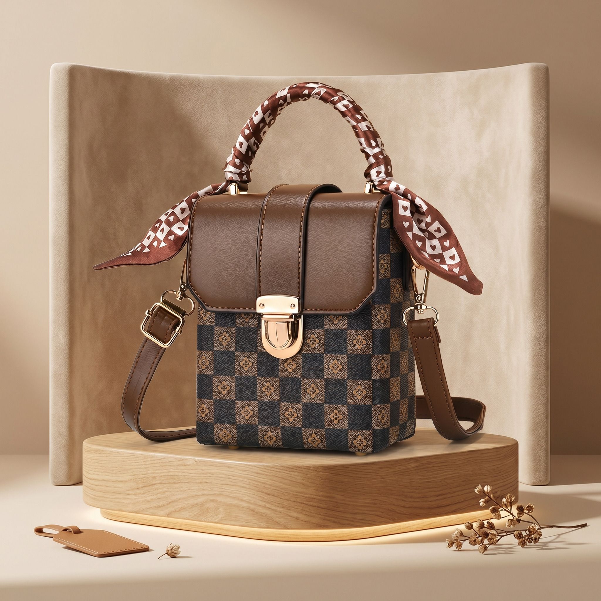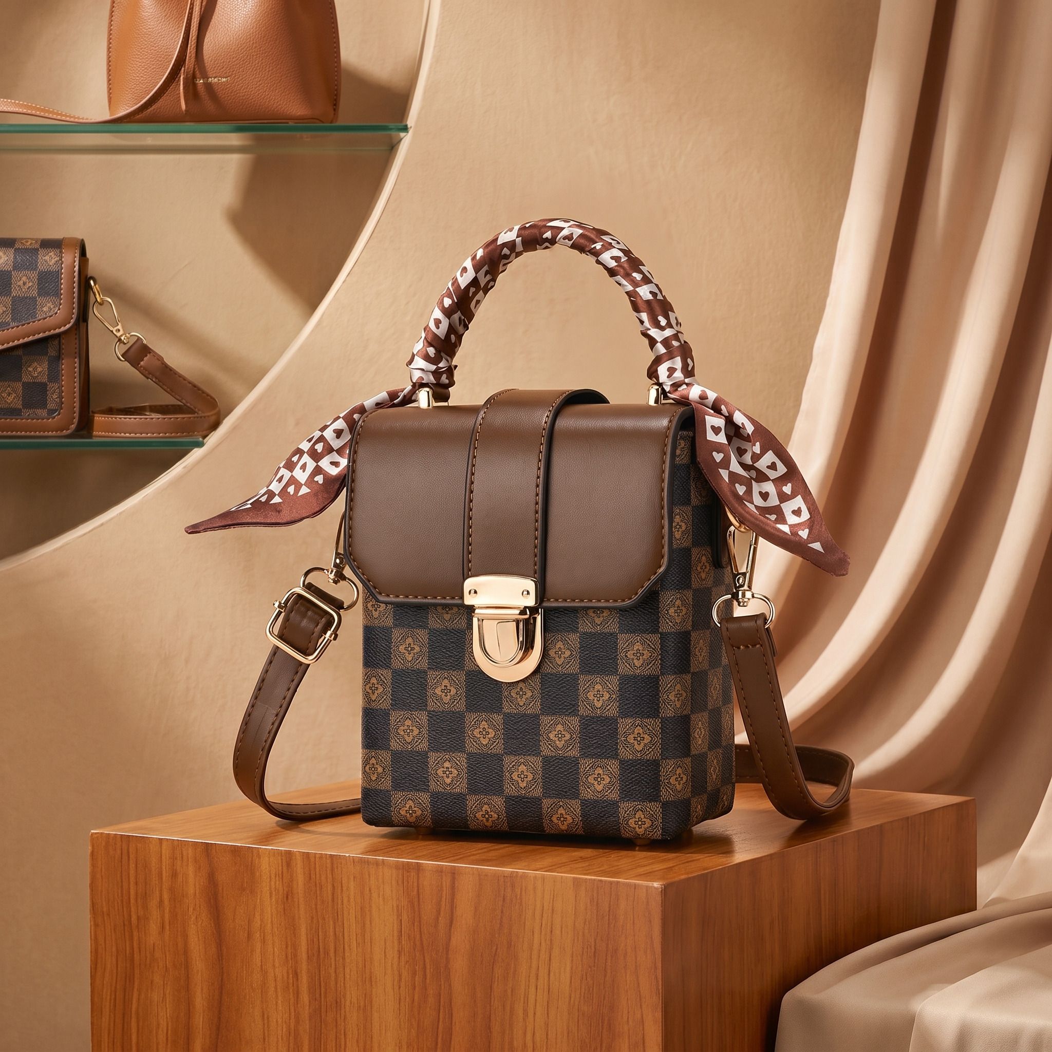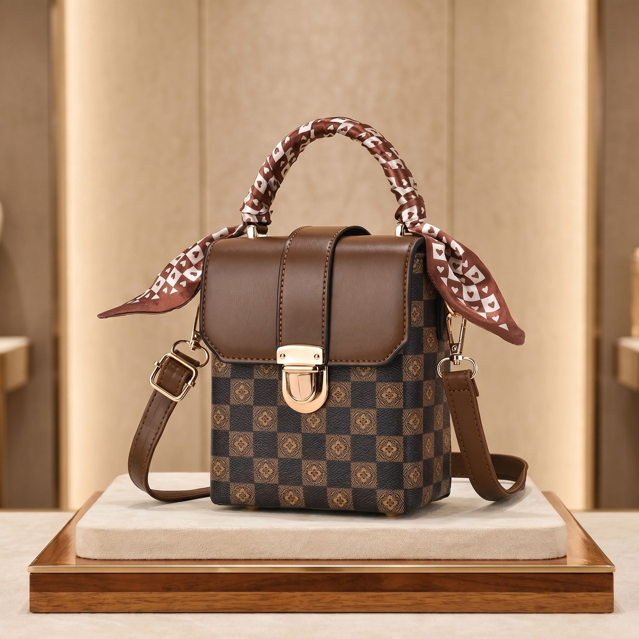 With its structured build, elegant checkered pattern, and versatile carrying options, this bag is perfect for everyday wear or special outings. Its compact size keeps your essentials organized while maintaining a sleek and fashionable look.