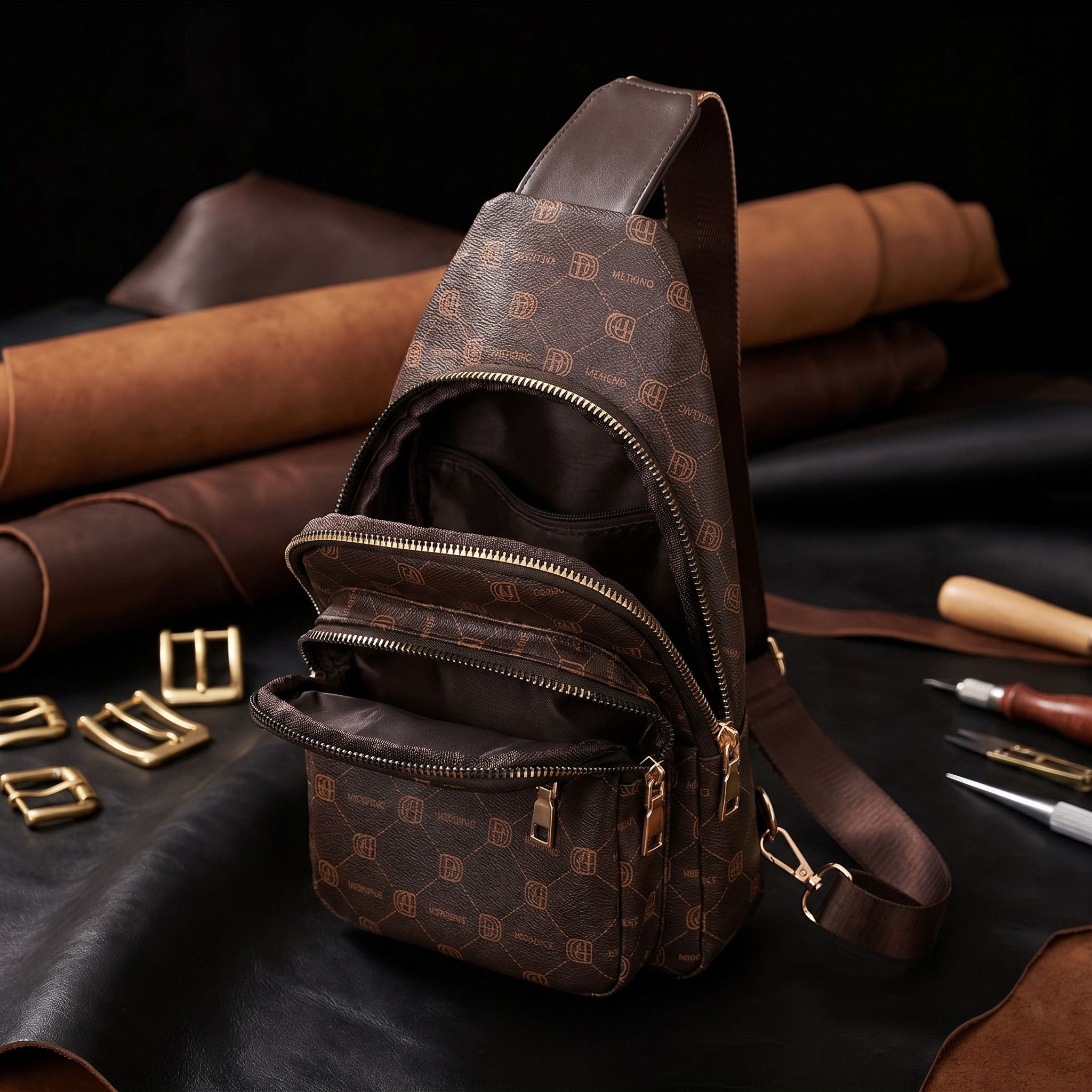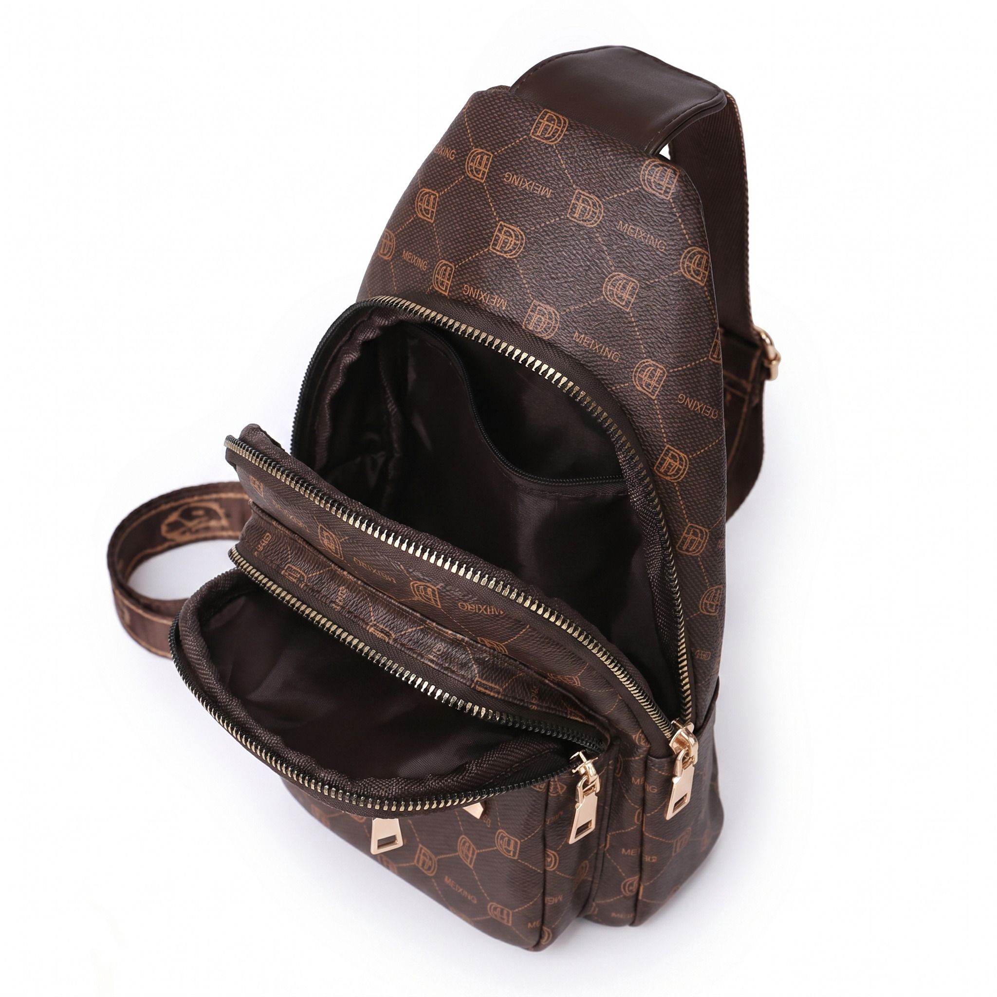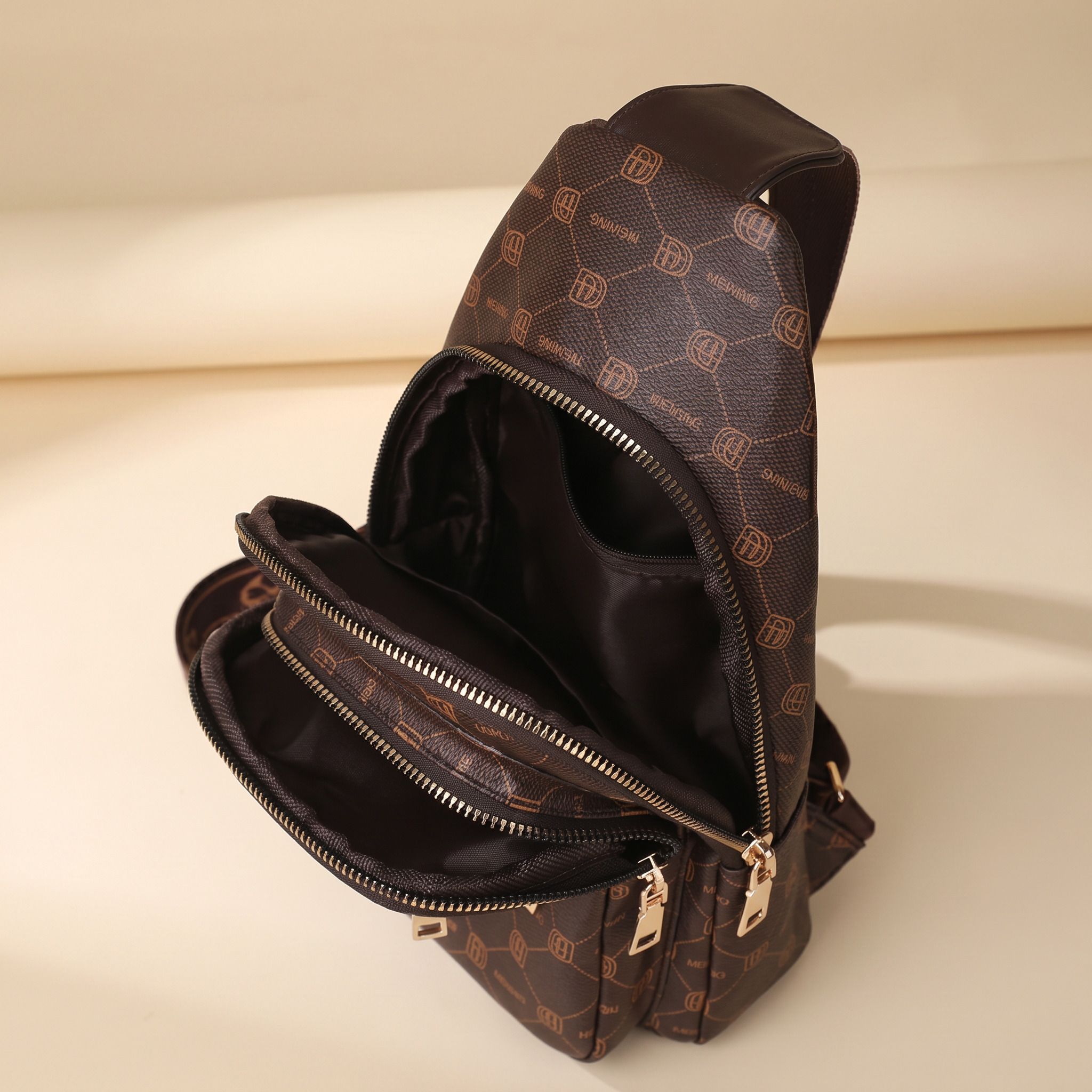 Upgrade your everyday carry with the Meixing Luxe Monogram Crossbody Sling Bag in Brown. Designed with a stylish designer-inspired pattern, this compact sling bag blends fashion and function effortlessly. Featuring dual front zippered pockets, a secure main compartment, and an adjustable strap, it is perfect for hands-free convenience on the go. Crafted from premium PU leather with a smooth finish and gold-tone accents, this bag delivers a luxury look without the luxury price. Ideal for travel, errands, or streetwear styling.
