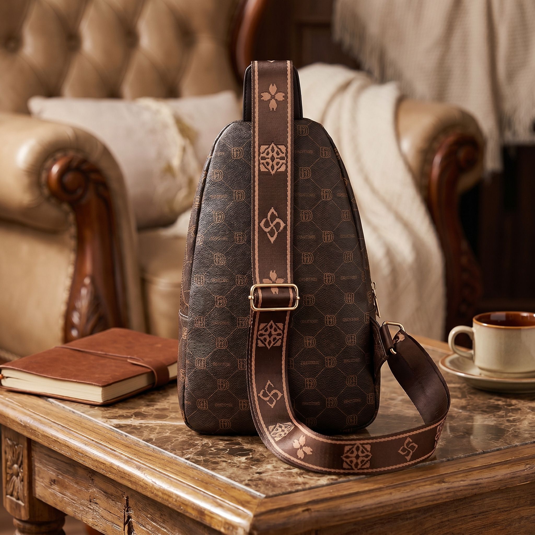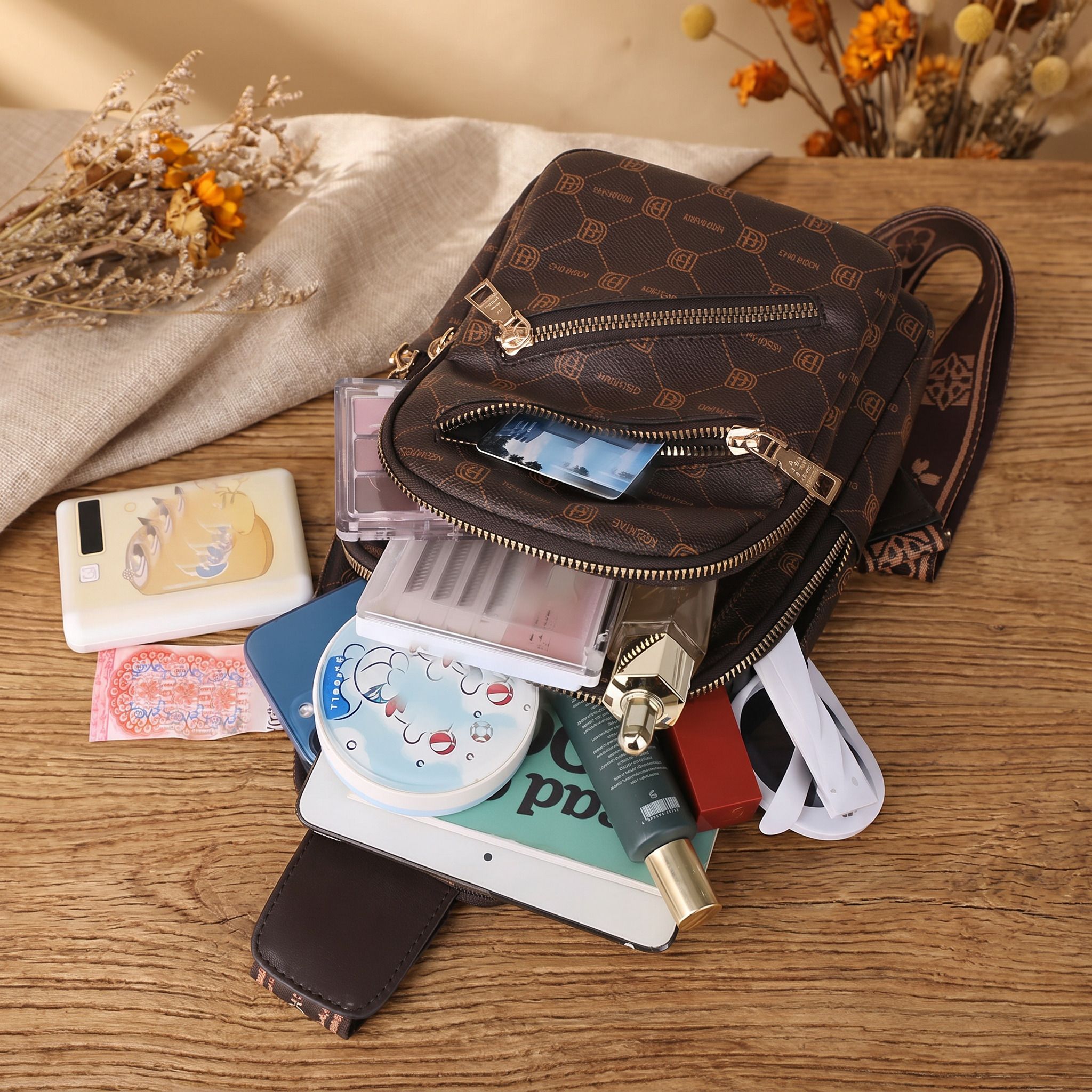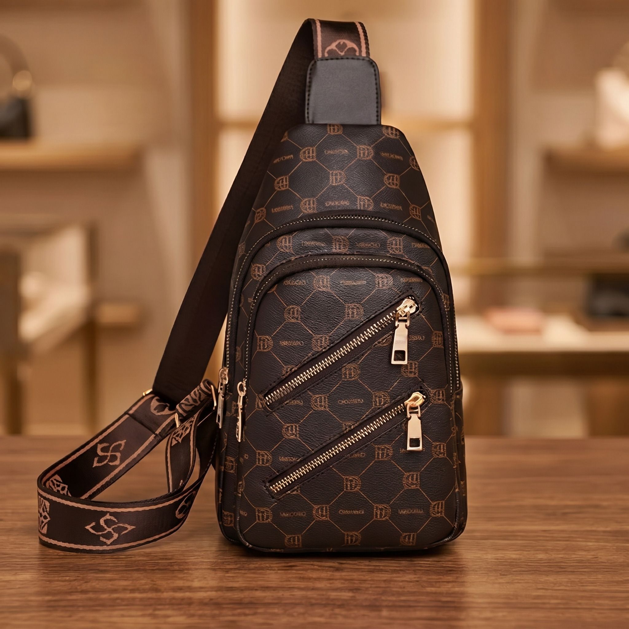 Upgrade your everyday carry with the Meixing Luxe Monogram Crossbody Sling Bag in Brown. Designed with a stylish designer-inspired pattern, this compact sling bag blends fashion and function effortlessly. Featuring dual front zippered pockets, a secure main compartment, and an adjustable strap, it is perfect for hands-free convenience on the go. Crafted from premium PU leather with a smooth finish and gold-tone accents, this bag delivers a luxury look without the luxury price. Ideal for travel, errands, or streetwear styling.