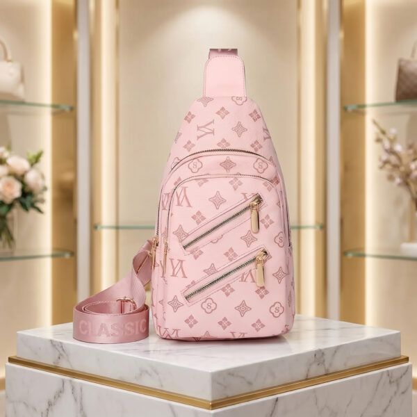 Pink Patterned Crossbody Sling Bag – Women’s Chest Bag with Gold Hardware