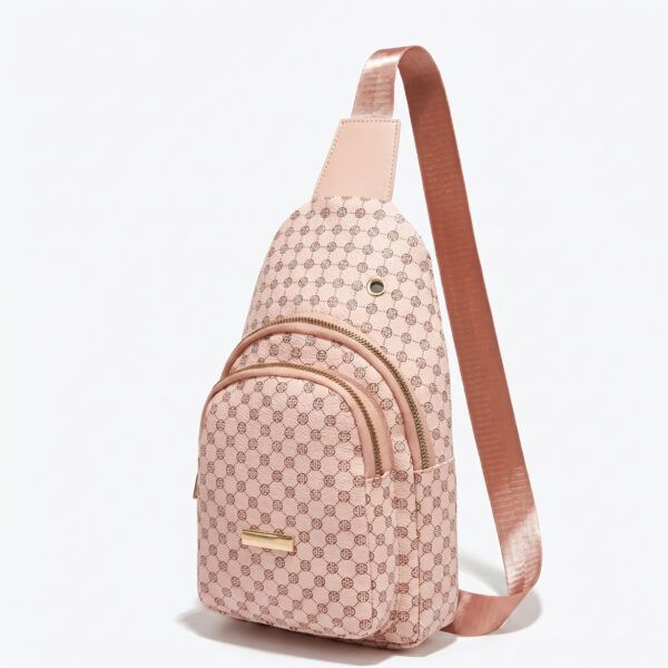 Light Brown Patterned Crossbody Sling Bag – Women’s Chest Bag with Gold Hardware