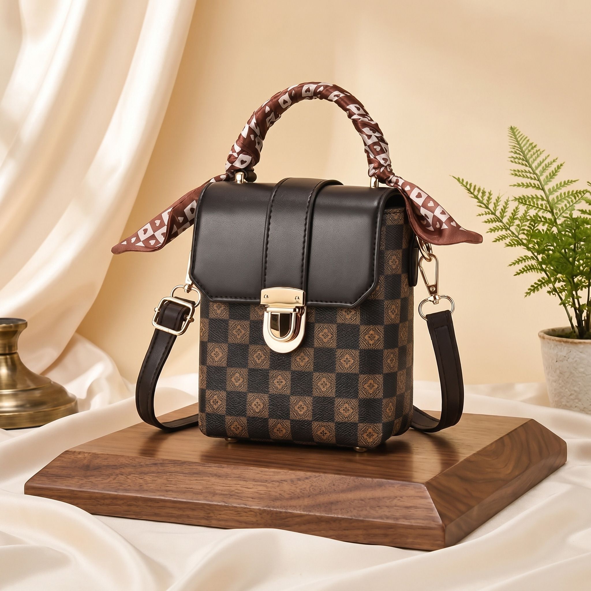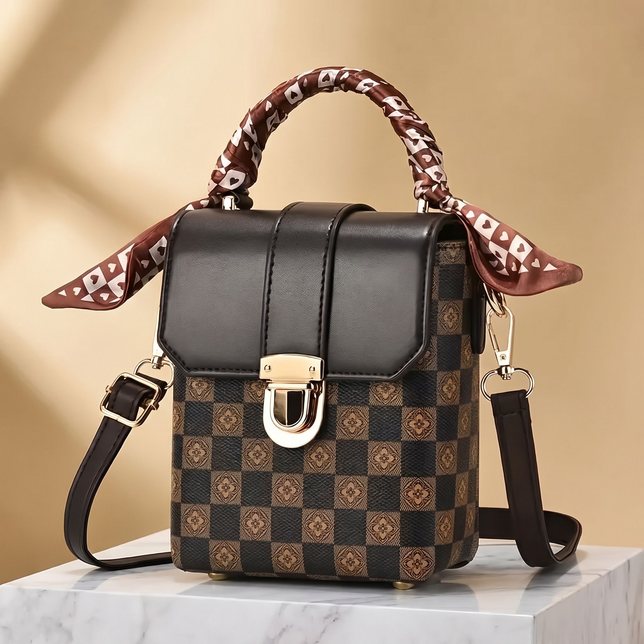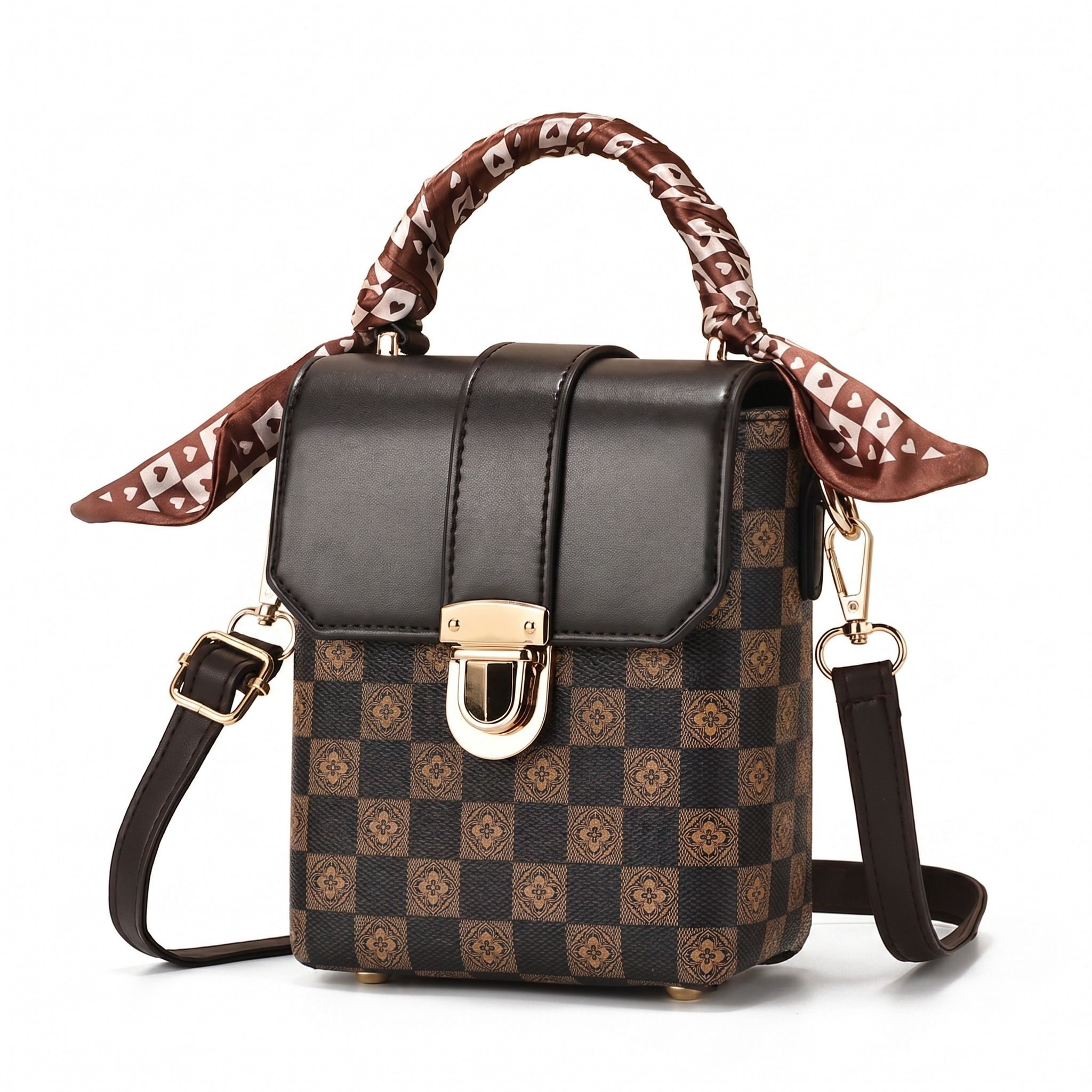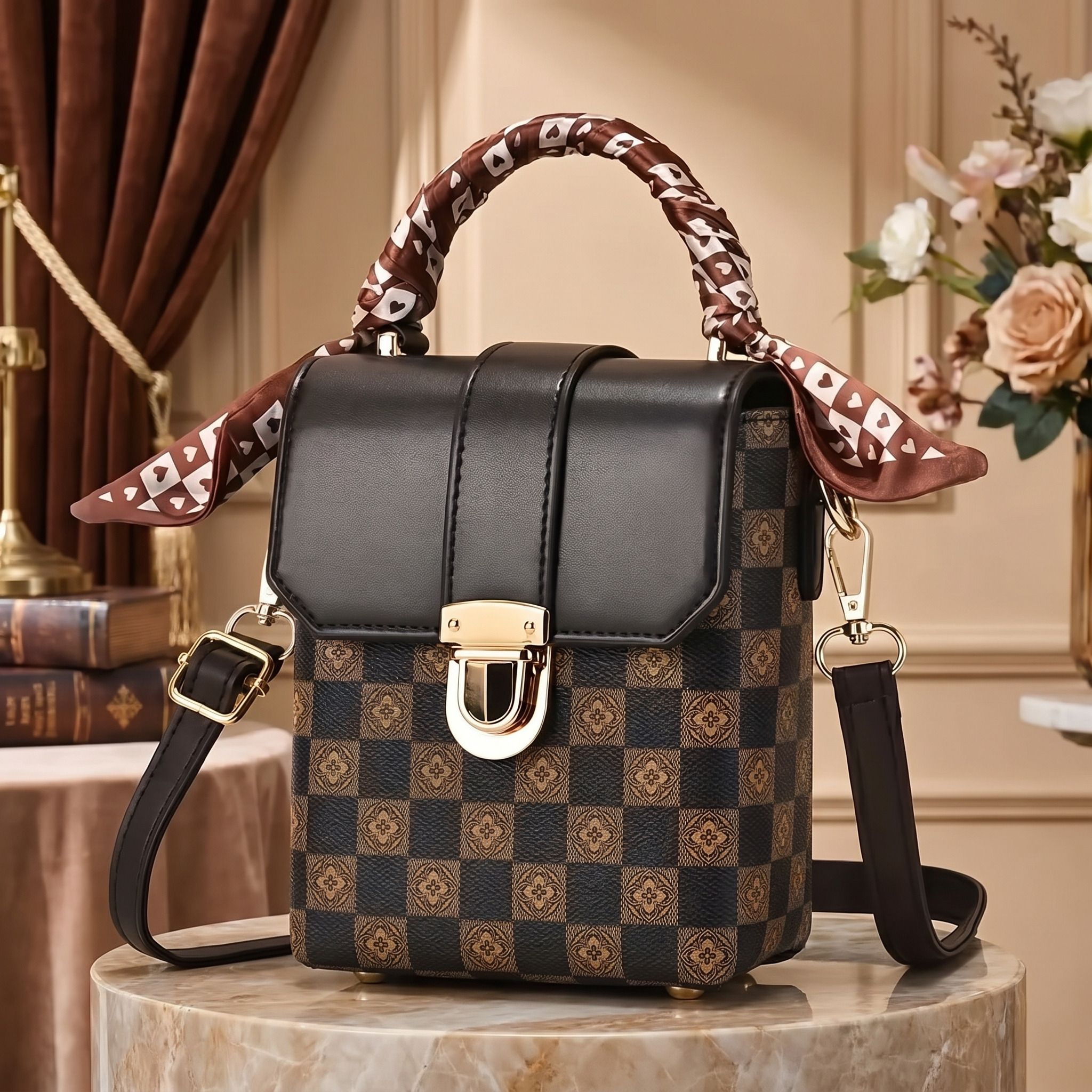 Featuring a structured silhouette with a rich brown top handle and a classic checkered pattern, this bag delivers a premium designer-inspired look without the high price. The combination of a top handle and adjustable crossbody strap gives you versatility for any occasion.
