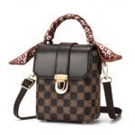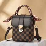 Brown Checkered Crossbody Satchel – Top Handle Vintage Style Bag with Buckle Clasp