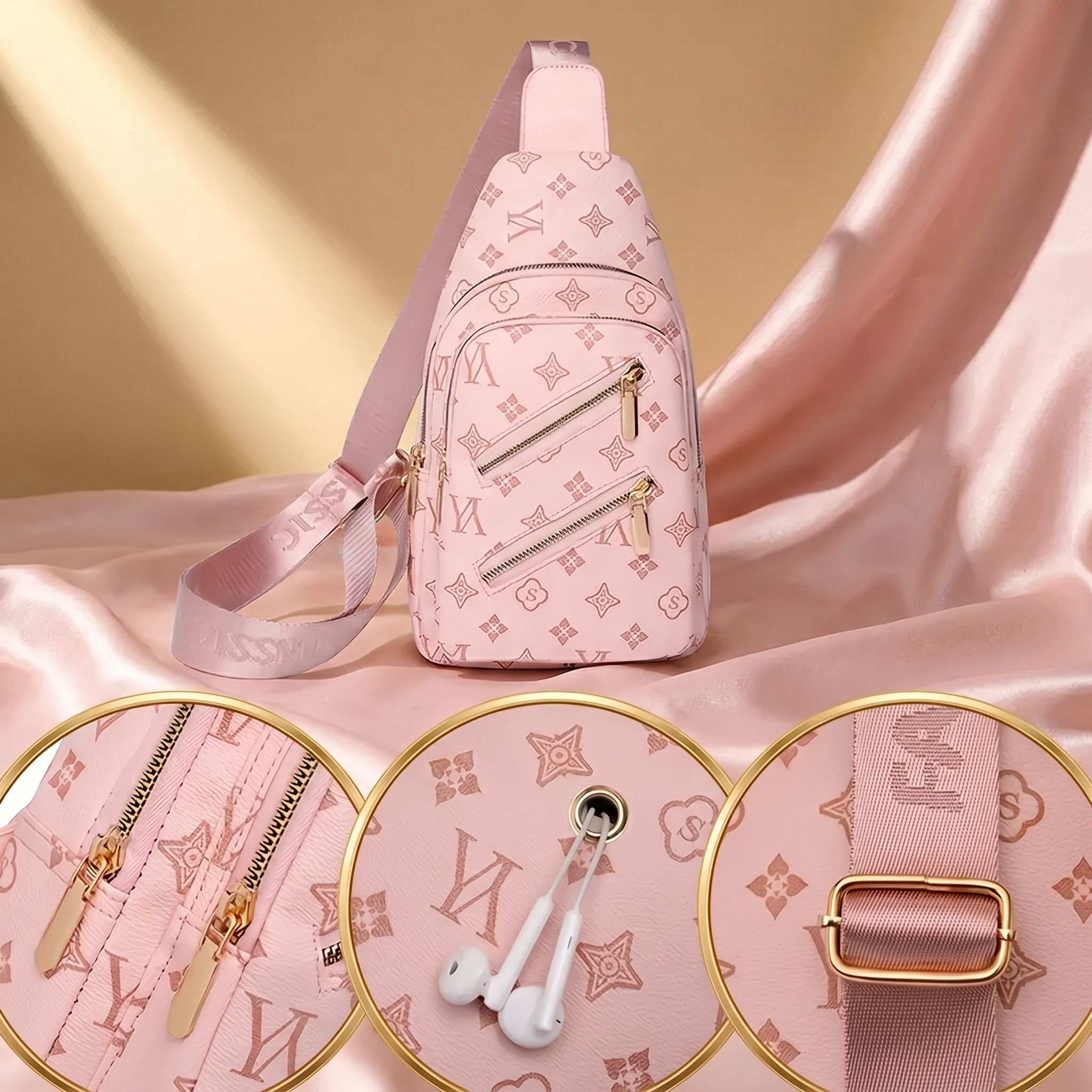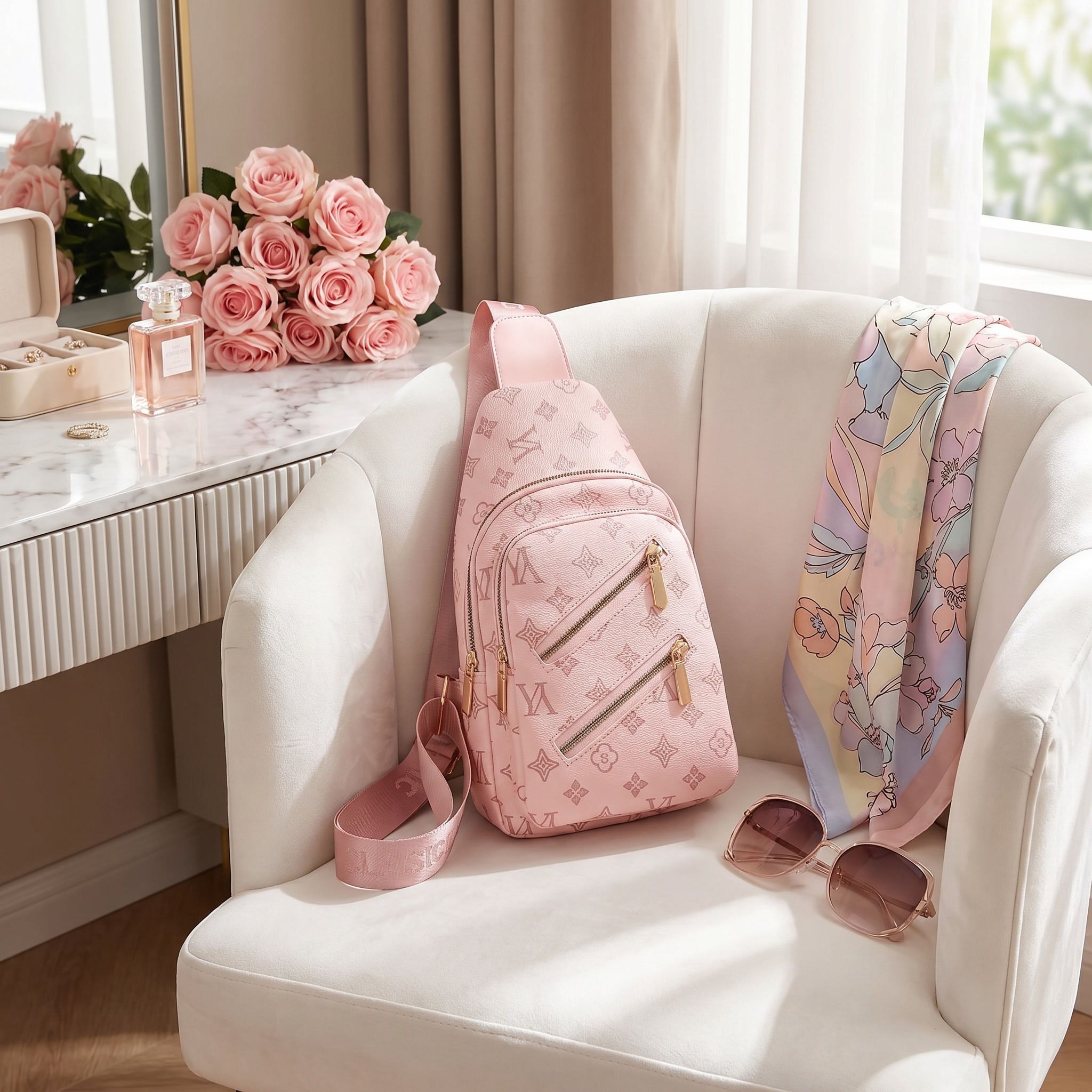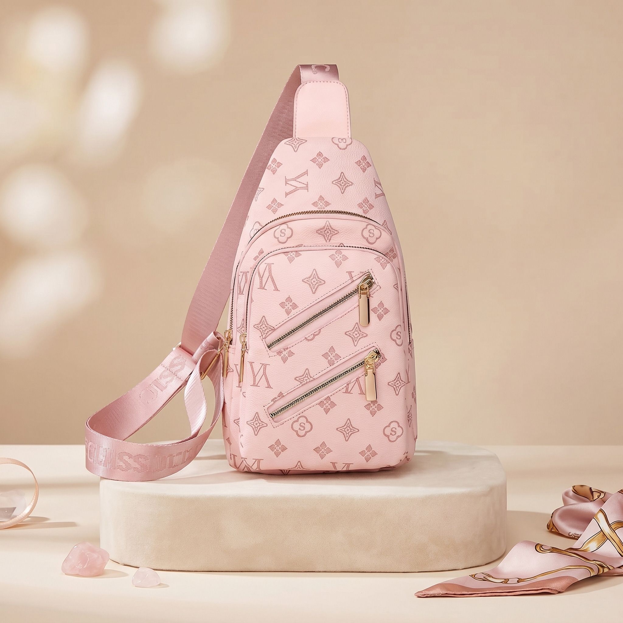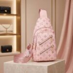 Add a soft, stylish touch to your outfit with this Pink Sling Bag. Featuring a trendy patterned design and elegant gold hardware, this bag is perfect for everyday wear while keeping your essentials secure and accessible.