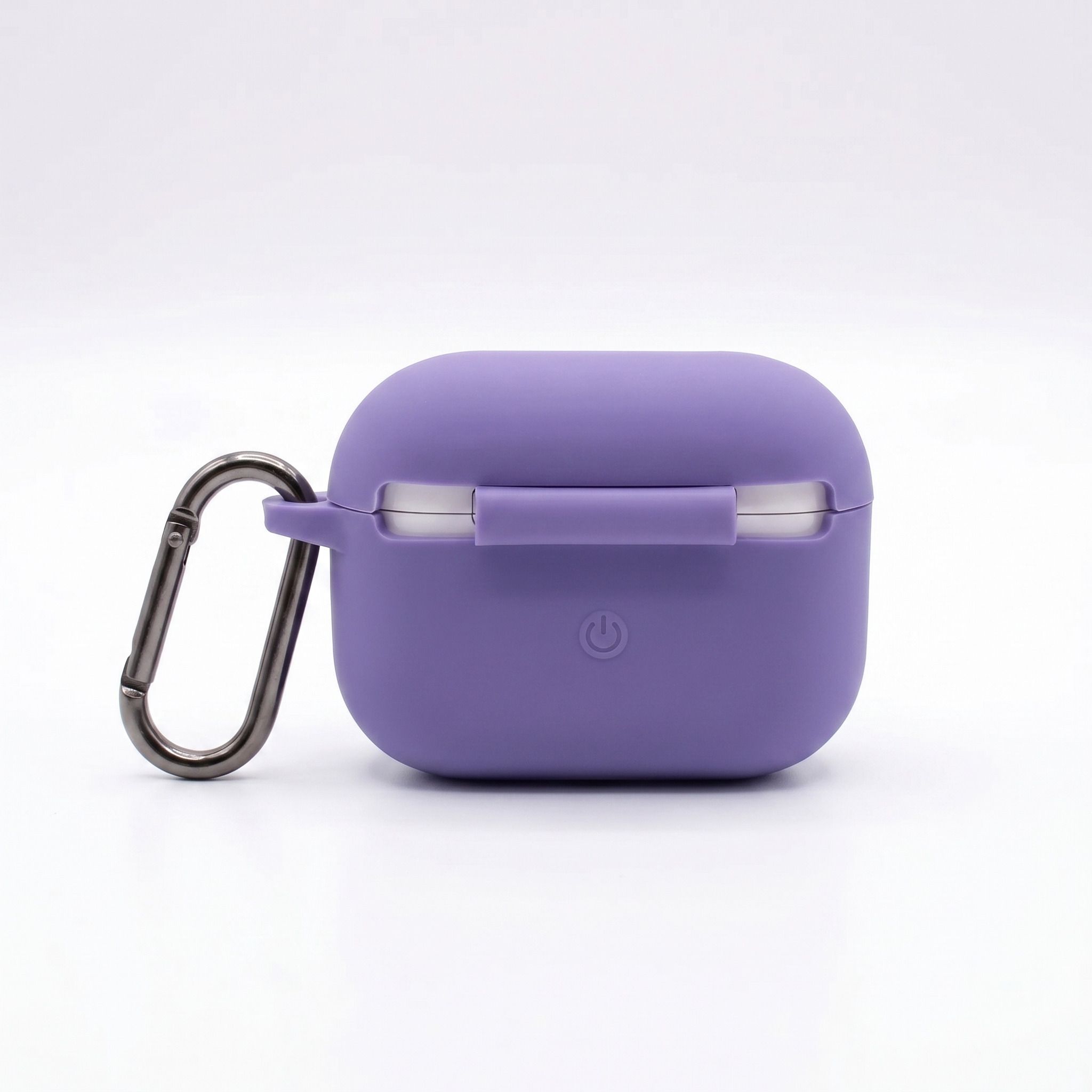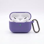 Purple Flat Base Silicone Case for AirPods Pro & Pro 2 – Stable Bottom Cover with Gray Carabiner