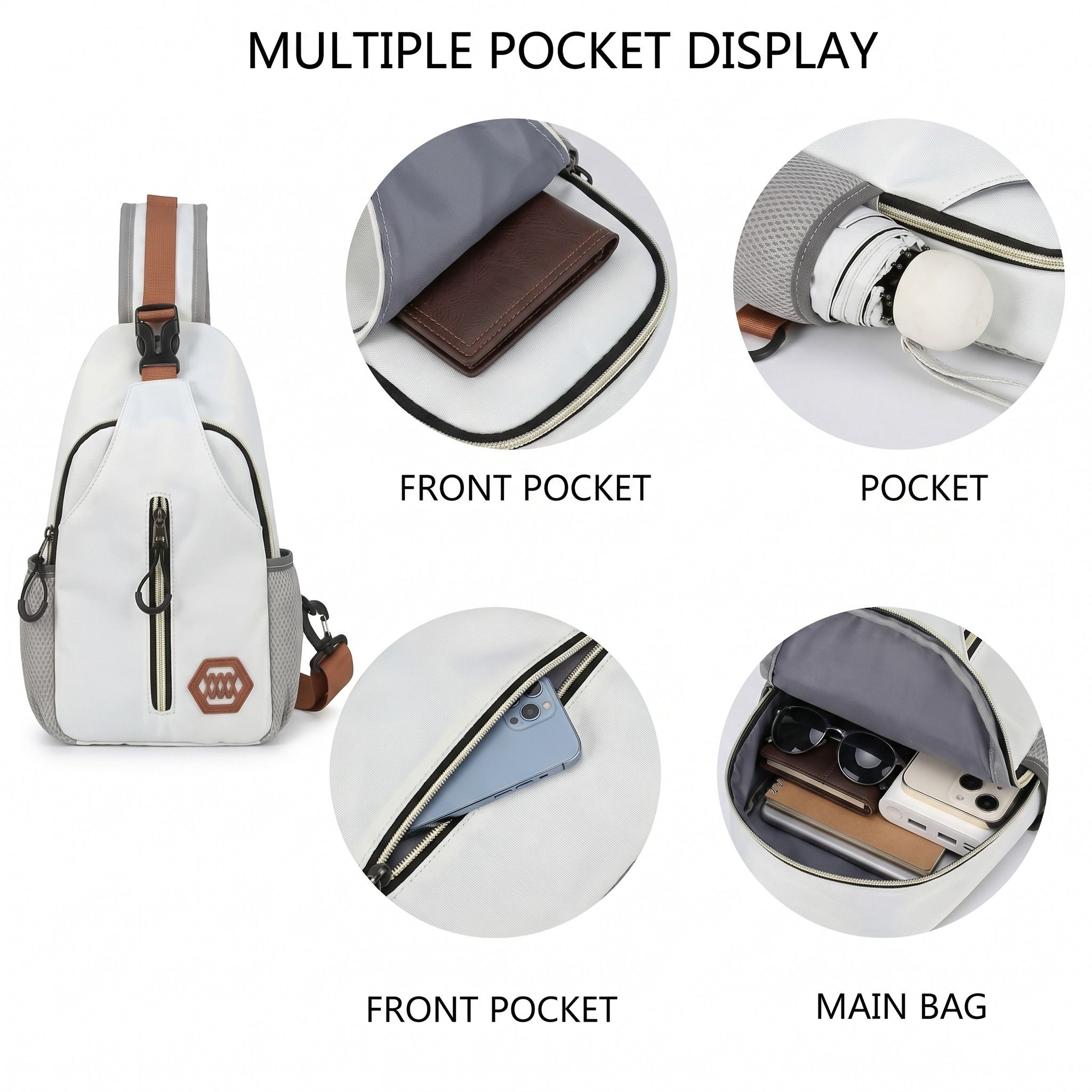 White ZHENMEISII Crossbody Sling Backpack – Travel & Everyday Chest Bag