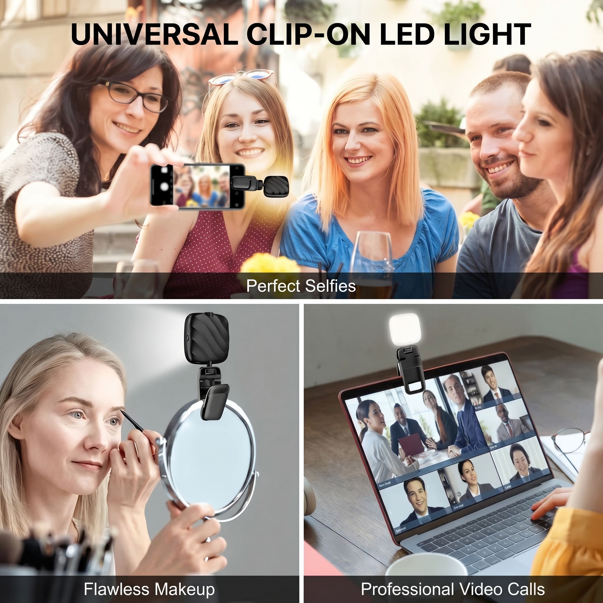 Upgrade your lighting anywhere with the Mini Clip-On Selfie Light, designed for creators, professionals, and everyday users.