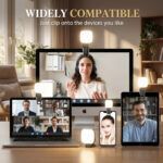 Featuring a sleek seashell-inspired design, this compact LED light clips easily onto your phone, laptop, or tablet to provide soft, flattering illumination for selfies, video calls, live streaming, and content creation.