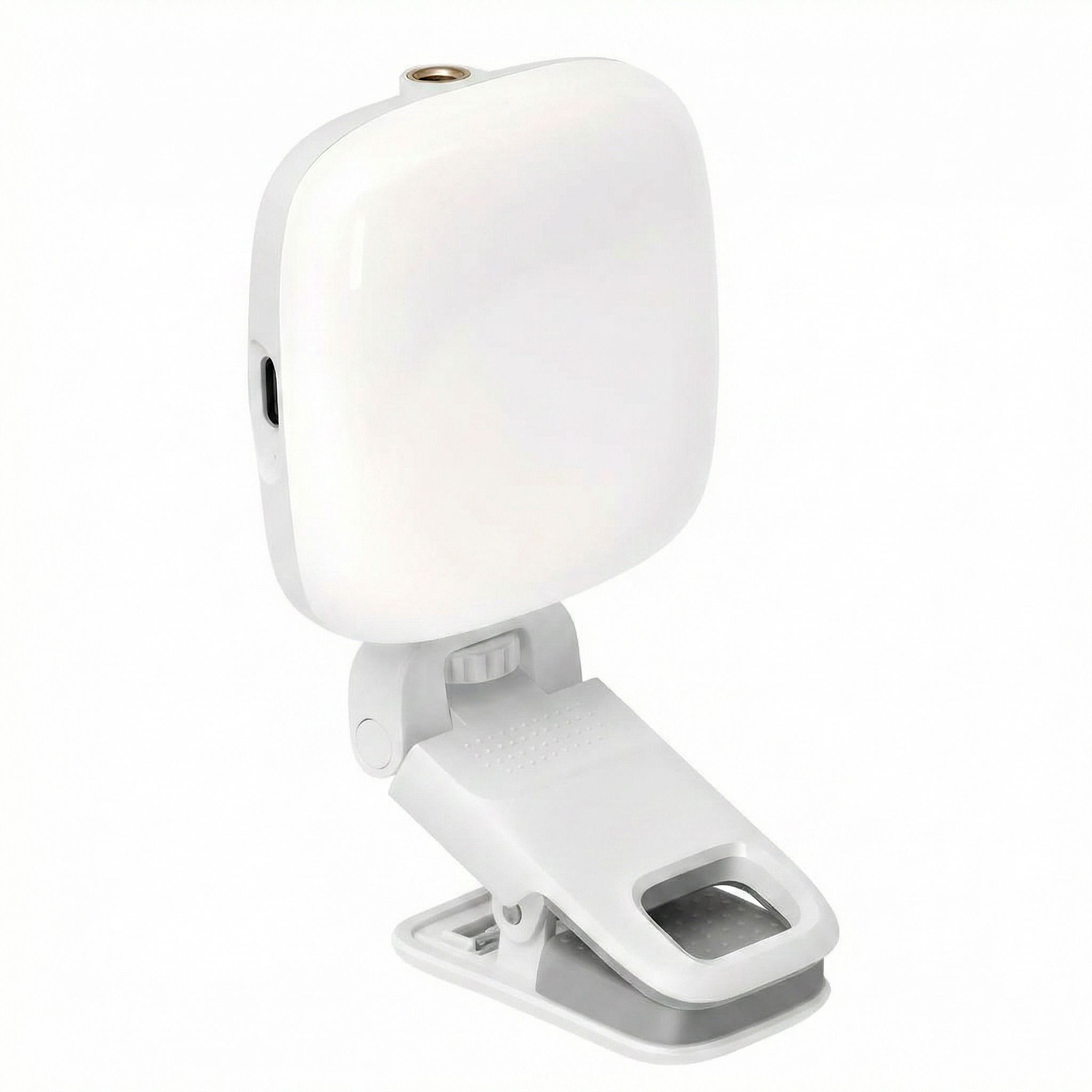 Home Lights White Seashell Mini Clip-On LED Fill Light – Rechargeable Selfie Light for Meetings, Video Calls & Streaming